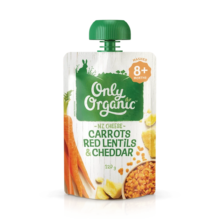 ONLY ORGANIC CARROTS RED LENTILS & CHEDDAR