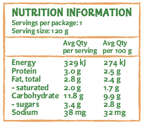 Thành phần: Các loại rau và thực vật (Cà rốt* (30%), Bí ngô*), Nước, Táo*, Phô mai* (sữa) (5%), Bột gạo*, Đậu lăng đỏ*(2%) *Nguyên liệu đạt chuẩn Organic, bao gồm sữa.